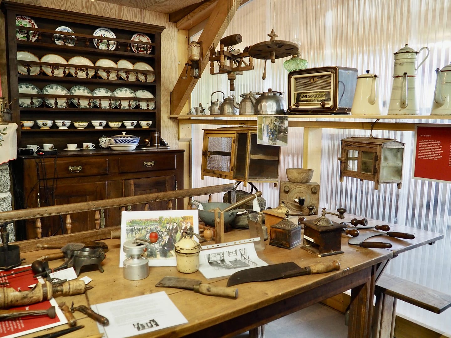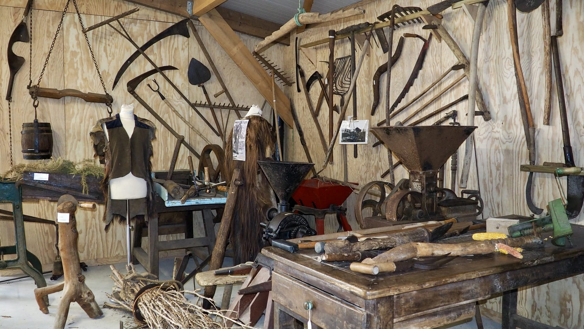 Entrer au musée, c’est pénétrer dans un monde disparu, celui de ces petites fermes traditionnelles qui maillaient le territoire et pratiquaient une polyculture de subsistance, et de ces échoppes d’artisans implantées un peu partout dans les bourgs et les villages, forges, menuiseries, bourrelleries, fabricants de sabots…